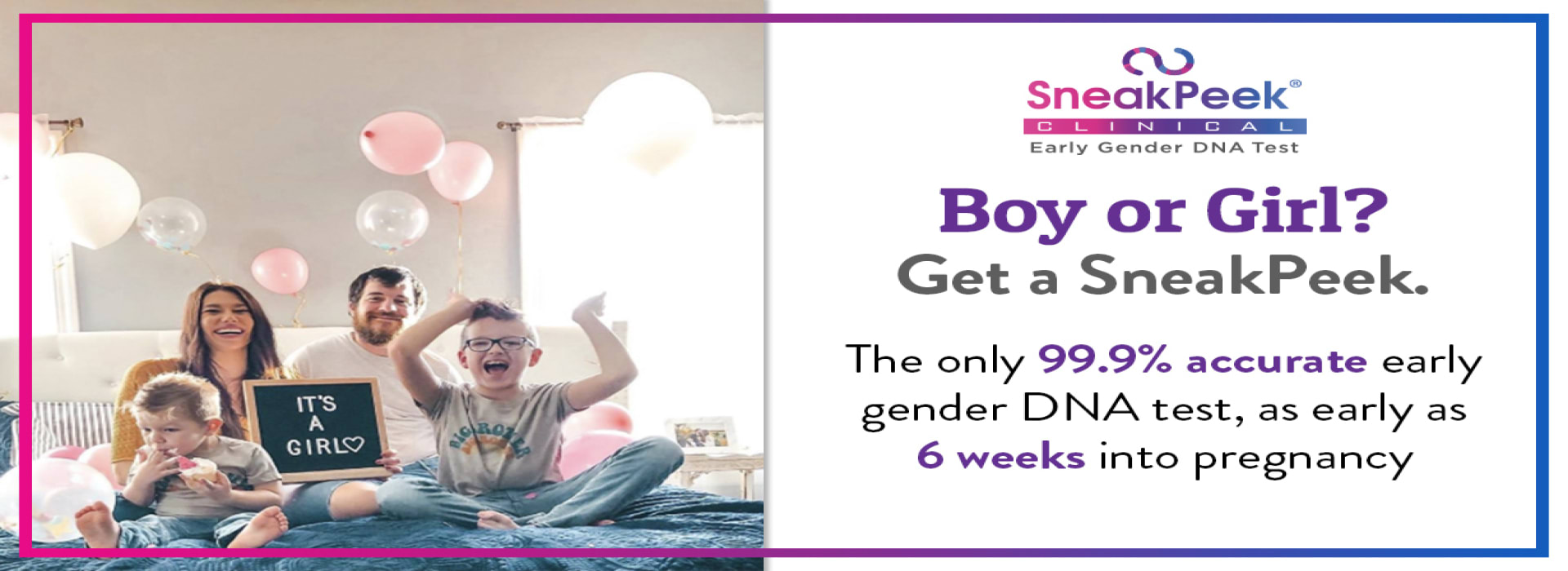 SneakPeek Clinical by Gateway Genomics is the only clinically proven early gender DNA test that lets you discover your baby’s gender months ahead of schedule, so you can prepare for your little one and share with family and friends! The test uses non-invasive prenatal testing (NIPT) to look for male Y chromosomes from a small sample of your blood. If male Y chromosomes are found, that means baby is a boy. If none are found, baby is a girl. SneakPeek is the leading provider and most accurate early gender DNA test on the market, trusted by over 500,000 mums and obstetricians.